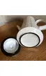 Emaillage blanc sur le corps et bleu sur le couvercle.