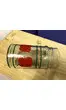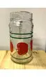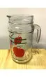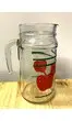 Pichet vintage en verre décoré de pommes bien rouges et de lignes vertes.